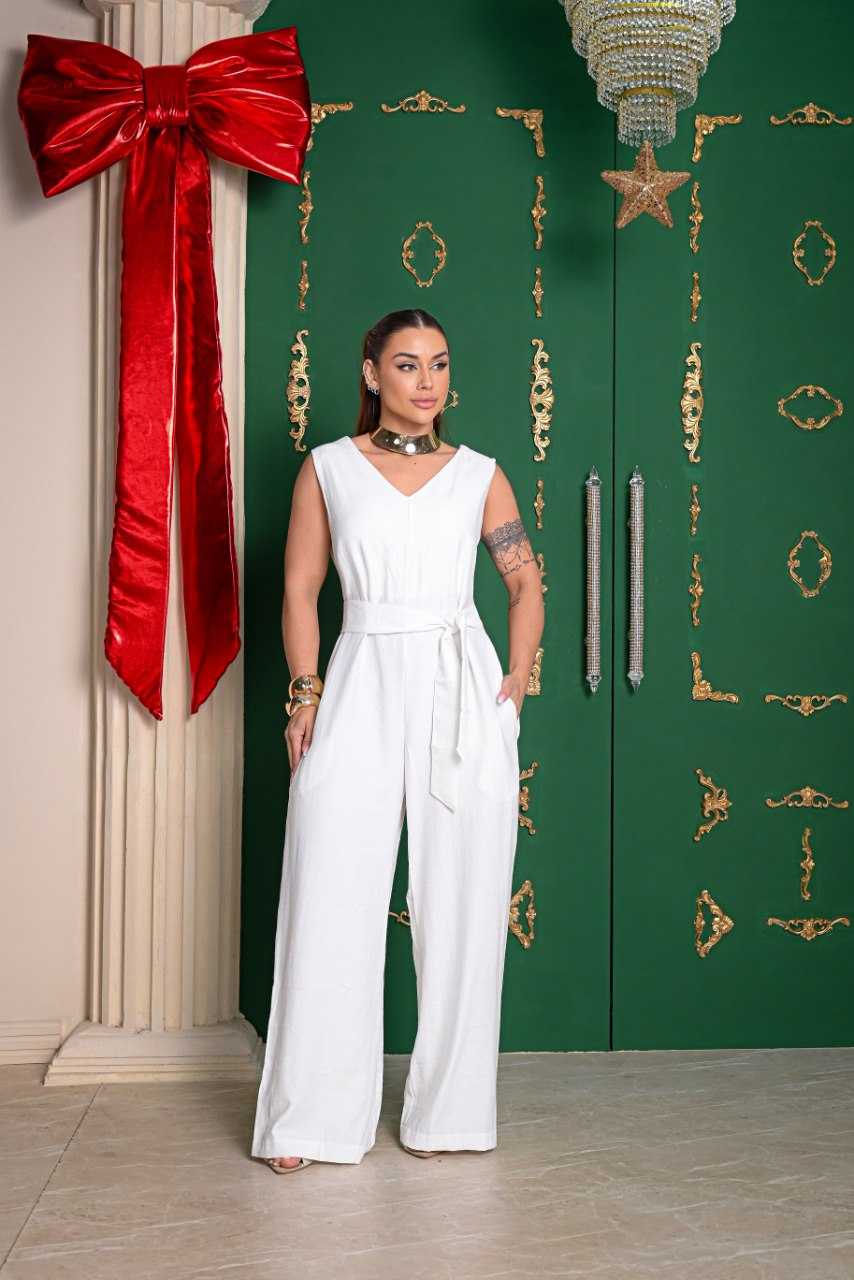 Descrição: Macação perfeito para quem busca sofisticação e conforto. O decote V valoriza de forma sútil, enquanto a faixa na cintura permite ajustar e definir o corpo com delicadeza. O resultado é uma peça moderna, refinada e versátil. Modelo possui bolsos.